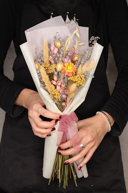 Не большой букет из сухоцветов, который идеально подойдет для вазы.
