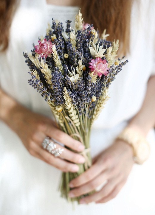 Невесты часто стали выбирать свадебный букет именно из сухоцветов. Это практично и современно. Такой букет можно собрать за долго до торжества и сделать его идеальным. Он не испортится в день свадьбы и простоит еще много лет. Поэтому если вы не выбрали свадебный букет, то присмотритесь к букету из сухоцветов.
