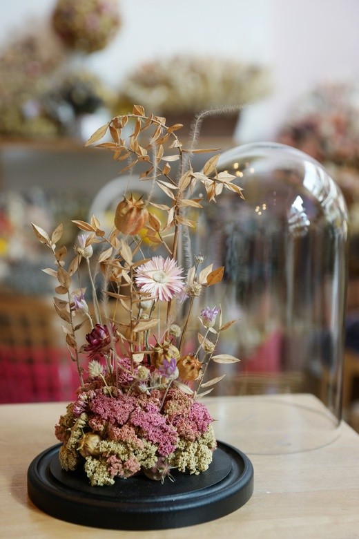 Стеклянный клош из сухоцветов для дома.