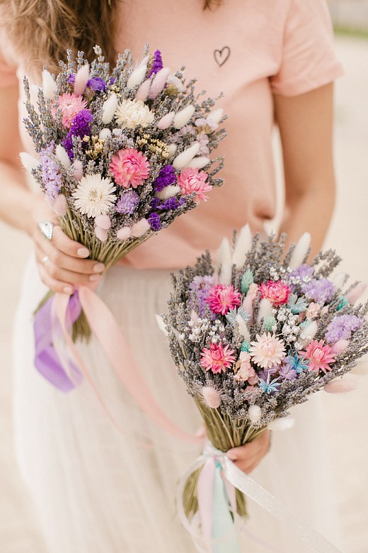 Чудесный букет из сухоцветов с лавандином и лагурусом.